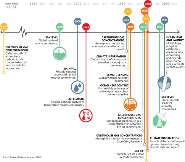Weather and climate touch all aspects of Australian life. What we experience here at home is part of the global climate system. The Bureau of Meteorology and CSIRO contribute significantly to the international effort of weather and climate monitoring, forecasting and research. In State of the Climate, we discuss the long-term trends in Australia’s climate.